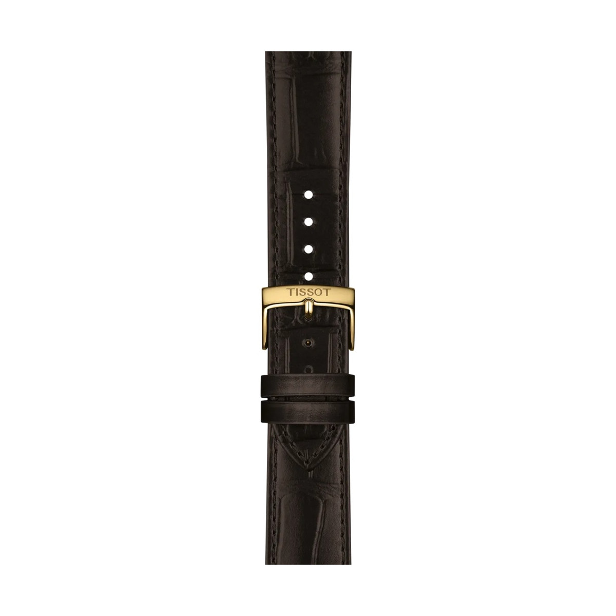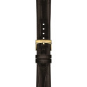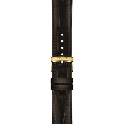Reloj Tissot Classic Dreams. Movimiento automático suizo Powermatic 80, con hasta 80 horas de reserva de marcha. Resorte de equilibrio Nivcharon patentado para una mayor preción. Caja clásica de 40mm fabricado en acero 316L hipoalérgico acabado IP dorado. Correa de piel de becerro marrón grabado cocodrilo con cierre de hebilla. Cristal zafiro irrayable. WR 5bar.