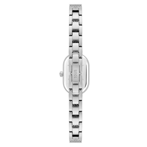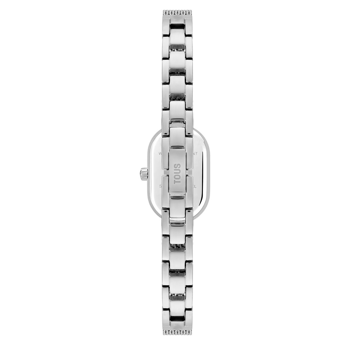 Reloj Tous Oval Icon acero. Movimiento de cuarzo de dos agujas. Caja ovalada de 18x29mm y brazalete milanés de acero 316L hipoalérgico con cierre de uñeta. Esfera gris plata. Cristal mineral. WR 3bar.